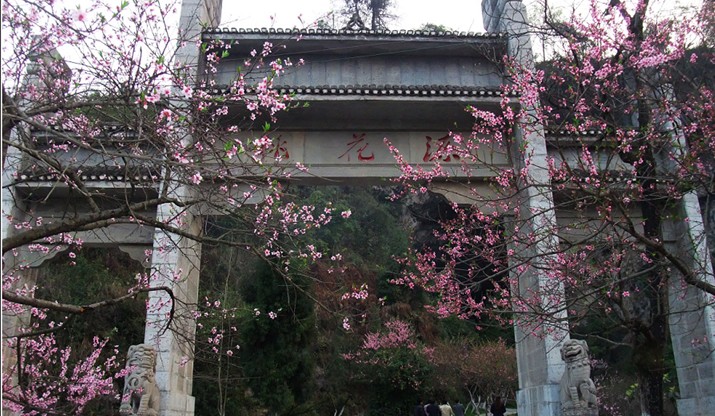 桃花源這個名勝古跡,神州大地家喻戶曉,東晉大詩人陶淵明在《桃花源詩并序》中描繪的“世外桃源”,環球之內盡人皆知。久負盛名的桃花源究竟在何處?權威工具書《辭海》在有關“桃源山”條目的解釋中明確指出,桃源山“在湖南省桃源縣西南。下有桃源洞,又名秦人洞,白馬洞“,是東晉陶淵明所記桃花源的遺址。”