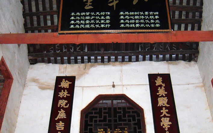 進入前大門,有廣寬的內坪,坪內種植著奇花異草。通過坪中石板道,直達二進臺階。中廳門上懸掛著曾國藩所書的“富厚堂”3個紅底金字。正堂分為前后兩進,這是富厚堂的主體。前廳名“八本堂”,廳內懸掛曾國藩所書“八本堂”3個黑地金字匾額,額下是曾紀澤用隸書所寫其父的“八本”家訓:“讀古書以訓詁為本,作詩文以聲調為本,侍親以得歡心為本,養生以少惱怒為本,立身不妄語為本,居家以不晏起為本,居官以不要錢為本,行軍以不擾民為本。”中廳后面是神臺,五龍捧圣的神龕上,有曾紀澤直書的“曾氏歷代先親神位”匾;頂上懸著同治九年(公元1870年)皇上御書欽賜曾國藩的“勛高柱石”黑地金字橫匾。兩旁墻上還掛著賞賜的御書“福”、“壽”二字直匾;版權所有山東聊城聊之旅國際旅行社有限公司,轉載必究!神龕照壁上則是他于同治二年自書的“肅雍和鳴”白地藍字橫匾。