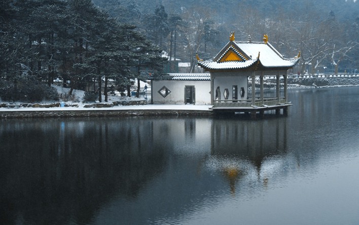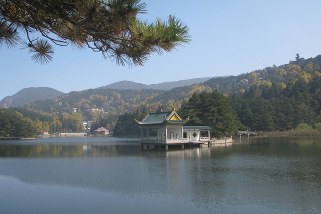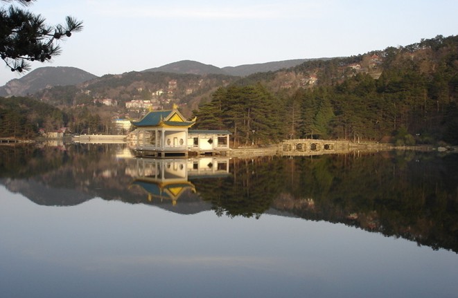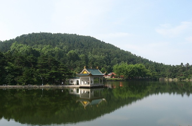 如琴湖的景致美極了!首先映入眼簾的是湖岸及周圍濃濃的綠意。除了遠處牯嶺山坡間那紅紅黃黃的屋頂在綠樹叢梢探頭探腦之外,其余放眼望見的都是醉人的綠。廬山的物種資源豐富,植物分布有亞熱帶叢林,有熱帶常綠闊葉林,有溫帶落葉闊葉林,還有寒帶特征的針葉林,以及一般灌木林、混交林等。所以,不同季節呈現不同的變化;就是在同一季節,也有多樣化的展現。就拿眼前湖山,滿目蔥蘢不同樹種的林帶來看吧:近水邊是一抹純玉般的翠綠,其后是一片染著鵝黃色的嫩綠,再往外是一幅斑駁夾雜的草青、麥綠,往山頂看去,就是一派似乎染了淡墨的濃濃郁郁的黛綠。難怪團友中有人贊嘆:廬山展現的大自然的綠就像一塊調色板,綠得深淺有致,版權所有山東聊城聊之旅國際旅行社有限公司,轉載必究!綠得層次分明。我們不妨再欣賞湖面:由于這里巒嶺相依,縱橫圍抱,更使這半山湖泊顯得水光閃爍,把遠遠近近的花、草、竹、木、山、樓、亭、橋的倒影都吸納湖里,把多層次多變化的大片綠色也凝結在湖里。我不由吟起一首詩:“湖山湖水兩青青,迎沐東風一片情。小徑廊橋嘉樹美,落花猶自帶詩聲。”在這里真是有“小徑廊橋”的:如琴湖橢圓形的湖心島西邊,就建有一水榭,配建的九曲廊橋與湖岸相連;島上四周蒼松吐翠,有小徑供游人漫步。在這里呼吸著清新沁人的空氣,你真會陶醉在綠的懷抱和詩的意境里。