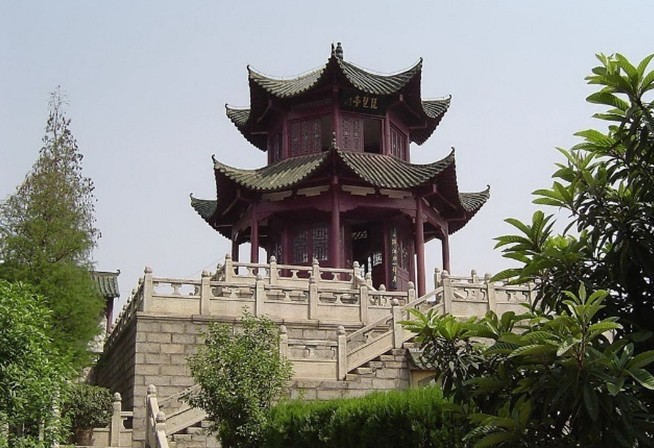 琵琶亭,位于九江市長江大橋東側,面臨長江,背倚琵琶湖。唐代元和十年(815年),詩人白居易由長安貶任江州(今九江市)司馬。翌年秋天,送客于潯陽江(今九江市北長江一段)頭,有舟中夜彈琵琶者,聽其訴說身世,觸景生情因作《琵琶行》贈之,亭名 由此而來。