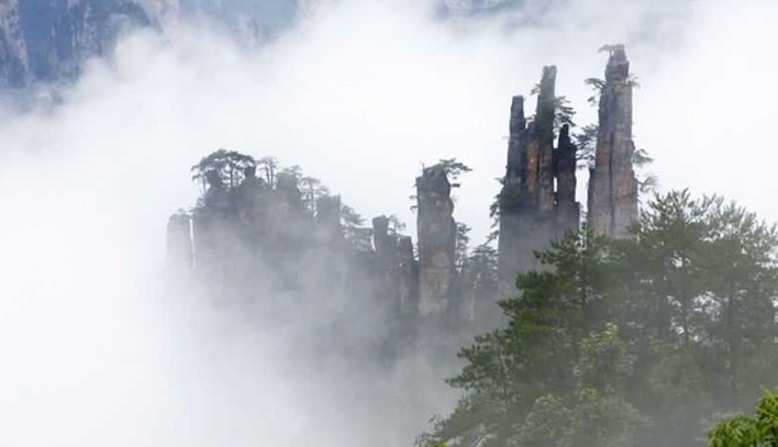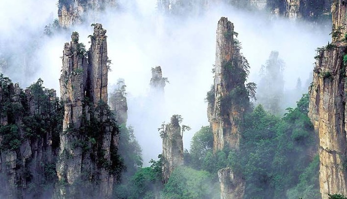 武陵源獨特的石英砂巖峰林在國內外均屬罕見,素有“奇峰三千”之稱。在217.2平方公里的核心景區中,有石英砂巖山峰3103座,峰體分布在海拔500-1100米,高度由幾十米至400米不等。峰林造型若人、若神、若仙、若禽、若獸、若物,變化萬千,這些突兀的巖壁峰石,連綿萬頃。每當雨過天晴或陰雨連綿天氣,山谷中生出的云霧繚繞在層巒疊嶂之間,云海時濃時淡,石峰若隱若現,景象變幻萬千。