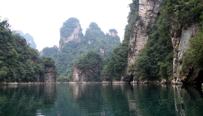 世界自然遺產------寶峰湖:被稱為“世界湖泊經典”,地處張家界武陵源風景名勝區的核心地帶,距天子山8公里,距武陵源區政府1.5公里,距黃龍洞8公里。寶峰湖風景區集山水于一體,融民俗風情于一身,尤以奇秀的高峽平湖絕景、“飛流直下三千尺”的寶峰飛瀑、神秘的深山古寺聞名。