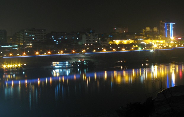 合江門是宜賓的一大型碼頭,可同重慶、樂山、云南等地,三江匯合,風光獨特,對面是宜賓白塔。站在合江門處,左面緩緩流淌、水色如黛的江是岷江,右面翻花鼓浪、水色泛黃的江是金沙江。一看就知道,岷江嫻靜溫柔,如窈窕淑女;金沙江粗獷剛烈,像鐵血兒男。他們在合江門擁抱,合流成為舉世聞名的長江,卷起一江歡樂的浪花流向東方,最后注入東海。