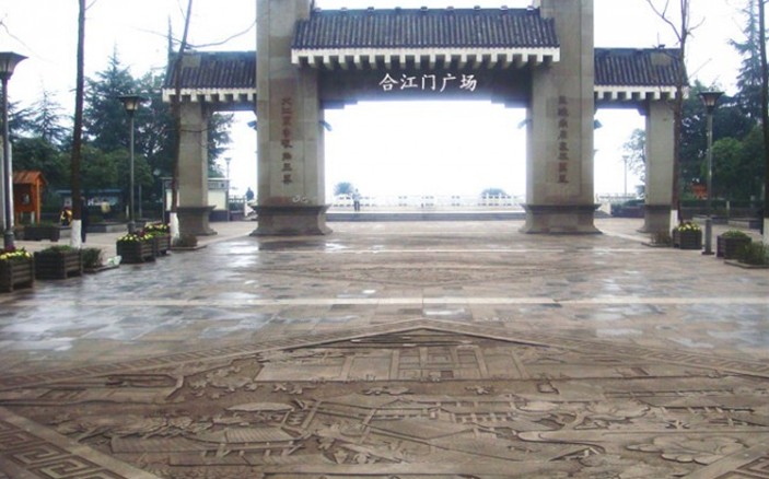 合江門金沙江、岷江交匯一側緊臨合江門地標廣場,建成時間是2001年3月20日。占地面積1.83萬平方米,有噴泉、牌坊、宜賓賦等景觀。