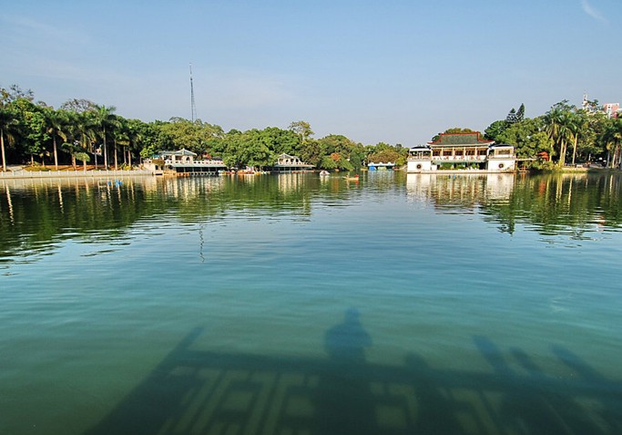 人民公園又稱白龍公園。面積50多萬平方米。圓內有一約7萬平方米的白龍湖,湖水澄碧。據宋人王象之《興地記勝》載,宋名將狄青曾駐望仙坡,見坡下湖邊一群白羊頗似龍形。因此以白龍名此湖。可見白龍湖已經有上千年的歷史。湖岸翠竹掩映,垂柳搖曳。湖心有小島,島西的九曲橋和島北的三孔月橋將島與湖岸相連。湖面的游艇,或藍天下競渡,或綠蔭徜徉,亦成一景。