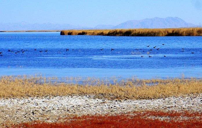 可魯克湖和托素湖雖然相距很近,而且有著相同的生態環境和變遷歷史,然而它們的姿態、風貌和性格卻迥然不同。可魯克湖屬于微咸性淡水湖,湖床低洼不平。巴音河的水常年帶著大量的牛羊糞和其他有機物注入湖內,使湖底變得泥質肥厚,雜草叢生,尤其是浮游生物極其豐富,而這些都是魚類天然的飼料。所以湖中土種湟魚和條鰍屬魚類很多。可魯克湖水色清澈,湖面平靜,景色綺麗旖旎。托素湖則是典型的內陸咸水湖,水生動植物和浮游動植物很少,湖的周圍全是茫茫的戈壁灘。托素湖湖面遼闊,湖岸開闊,無遮無攔,晴天時,湖面煙波浩淼,水天一色,蔚為壯觀;大風刮起,則浪濤洶涌,浪花飛濺,拍岸有聲,動人心魄。