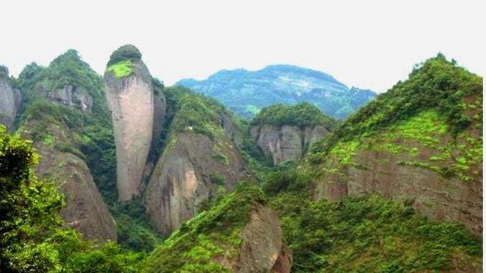 由丹霞地貌堆積、發育成的八角寨之高、天一巷之長、蠟燭峰之峭、紅華赤壁之絕、將軍石之俊、駱駝峰之優,加上蔥郁茂密的深林植被、九曲縈繞、清澈見底的夫夷江,構成丹霞、綠水、青山相互襯托的美輪美奐的自然畫卷,讓來崀山旅游的游客贊嘆不已、流連忘返。