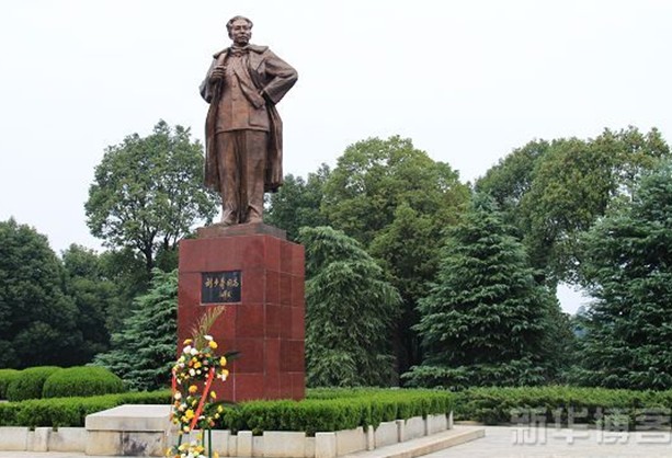 由中國美術館館長、著名雕塑家劉開渠及中國軍事博物館雕塑家程允賢設計的劉少奇銅像建于紀念館西南約200米的山包上,為站立式全身像,底座高3.1米,像高4米,總高7.1米,上鐫陳云題詞:“向堅定的共產主義戰士劉少奇同志學習”。