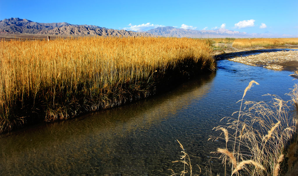 巴音河,蒙古語(yǔ),意為“幸福的河”。巴音河縱貫德令哈市區(qū),是境內(nèi)最大的河流,被稱之為德令哈市的“母親河”。她源出祁連山系哈爾拜山南坡,流經(jīng)澤令溝、尕海、戈壁等地,最后注入克魯克湖,全程200余公里。她無(wú)私地養(yǎng)育著世代居住在這里的各族人民,正是她的存在才使這座戈壁城市有了活力。站在柏樹山上俯視全市,城在林中,水在林間,巴音河猶如森林中的一條河流,而人也仿佛是置身于林與水之間的精靈。
