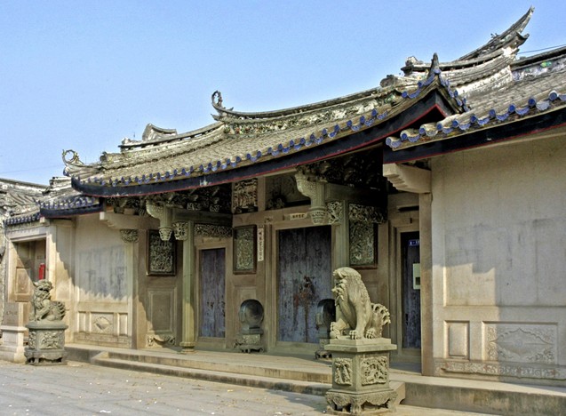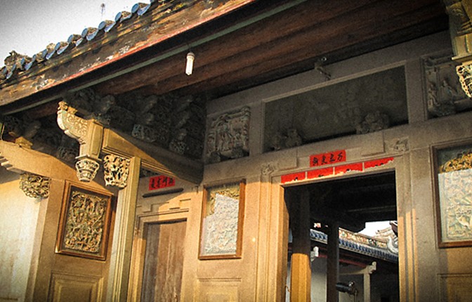 琳瑯滿目的建筑裝飾,使整座建筑物顯得更加富麗堂皇,首進(jìn)門樓前理分置精致石獅一對,門樓屋架為雙面鏤空石雕。而最令人嘆為觀止的還是鑲嵌于門樓石壁上的四幅石雕.這四幅石雕分別以土農(nóng)工商,漁樵耕讀,花鳥蟲魚為題材,每幅石刻都很好地運(yùn)用了“之”字形的構(gòu)圖,將不同時(shí)空的人、事、物集中在同一畫面,濃縮故事情有節(jié)。表現(xiàn)最富戲劇性的瞬間。