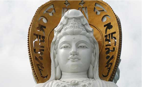 觀音圣像總體表示觀音“大慈與一切眾生樂、大悲拔一切眾生苦”的大慈大悲形象。如果說自由女神像代表了西方世界“自由”、“平等”、追求個性解放的思想,那么南山海上觀音圣像就是東方世界“慈悲”、“智慧”與“和平”的精神象征。