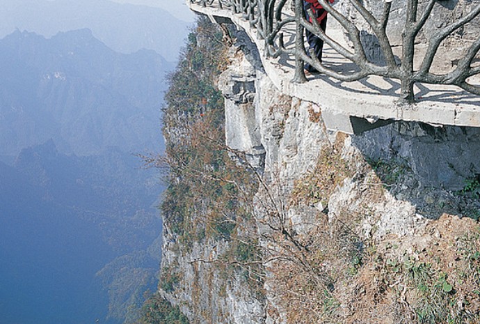 閆王碥崢嶸險峻,不過三十米長,地處海拔約1800米處,長滿樹木的山巖有如刀削一般,下是萬丈深淵,深得見不到谷底。絕壁上,橫空突出有奇形怪狀的黑石頭,腳下的小路只有一尺來寬,僅容一人通過。版權所有山東聊城聊之旅國際旅行社有限公司,轉載必究!行走時,要雙手扒在巖上,盯著腳下的路,一步步挪動。這是閆王碥的地方。