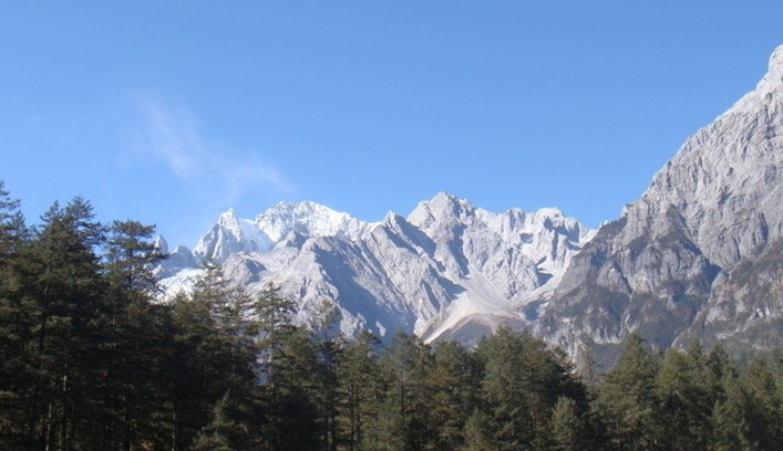 玉柱擎天風景區(qū)位于玉龍雪山主峰南麓,也是人稱玉龍山下第一村的地方--巫魯肯(白沙玉湖村),距離古城十余里。玉柱擎天海拔2800米左右, 主要景點有巨石壁字、太子洞、觀音巖、 雪松庵、千年古樹、上下深潭瀑布、美藉奧地利學者洛克舊居(是他居住和生活27年之久的地方)及高山螞蝗壩、仙跡崖、杜鵑山、木天王牧場、萬花園、巖碰巖、三思水、風光旖、秀甲一方。
