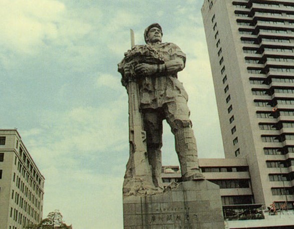 廣州解放紀(jì)念像立于海珠場(chǎng)中央。是廣州市人民政府為紀(jì)念廣州解放于1959年塑造的,作者詩尹積昌。 1969年“文化大革命”期間擬在此處建毛澤東塑像,將該解放紀(jì)念像拆除現(xiàn)廣州解放紀(jì)念像由潘鶴、梁明誠于1979年重新設(shè)計(jì)塑造,1980年建成。該紀(jì)念像于1963年被公布為廣州市文物保護(hù)單位。