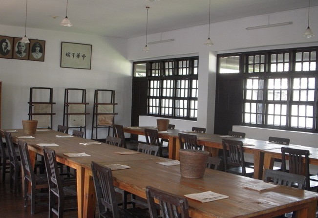 校長室和總理室設在樓上。校長室是蔣介石辦公和休息的地方,里面的擺設是按原貌恢復的。墻上貼著第一期學生的名錄,包括姓名、籍貫、年齡、評語等項。評語一欄由蔣校長親自填寫。每天中午,蔣校長都找?guī)孜粚W生問話、談心,將了解到的情況,寫到評語上。他在陳賡的評語欄寫上這樣的評語:“此人外形文弱,但性格穩(wěn)重,能刻苦耐勞、可以帶兵”。可見他能細致觀察學生的性格、能力和特點。