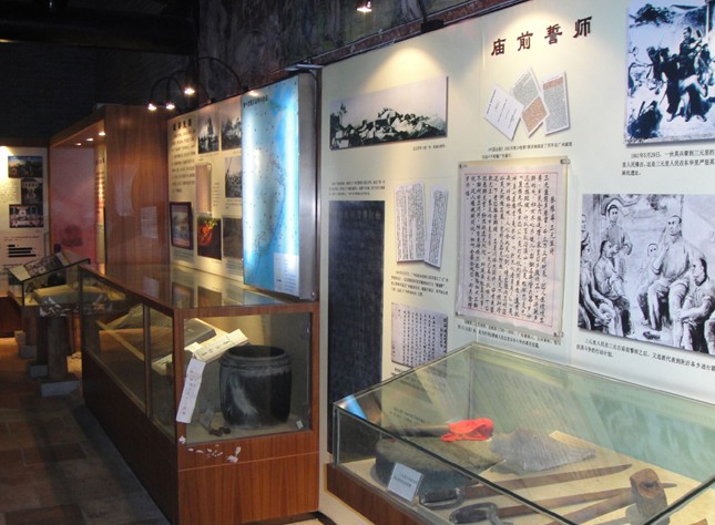 三元古廟建筑面積446平方米,二進面闊3間磚木結構建筑。館內陳列三元里抗英的文物史料,系統地介紹三元里人民抗英斗爭的史實,有三星旗、繳獲的英軍軍服、大刀長矛、伍紫垣印章等文物與資料。