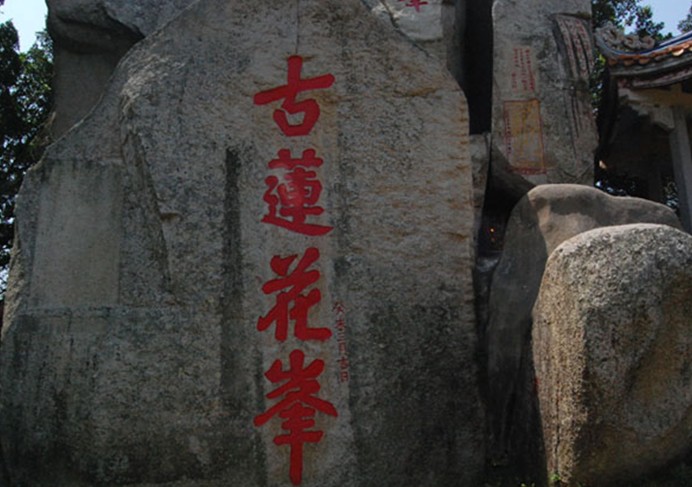 公元一二七八年,南宋民族英雄文天祥率領(lǐng)義軍,追蹤十歲小皇帝趙炳至潮陽蓮花峰,在此登峰望帝,眺望茫茫大海,極目尋望帝舟蹤影,帝舟片影無蹤。山峰是由幾片縱裂的花崗巖石拱圍拼湊而成,從陸上遠眺儼然若一朵含苞待放的蓮花,從海上觀之,則仿佛是一朵出水芙蓉,故文天祥將該峰命名為“蓮花峰”并刻石。還有許多名人石刻,其中有黑旗軍將領(lǐng)劉永福的草書“虎”字、書法家于右任和劉海粟等的題字等。現(xiàn)代作家老舍也在這里題詩曰:“遙憐信國此峰頭,水黑云寒望帝舟;今日紅旗明碧海,神州兒女競風(fēng)流。”