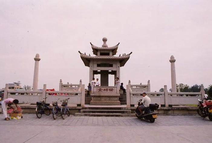 1987年,在原址修建鱷渡秋風亭和祭鱷臺。鱷渡秋風亭為金石結構,四柱四角雙重檐,分兩級層臺,上亭下臺,四周有石欄環護回廊欄桿,端莊且典雅。亭內設祭鱷臺,題書“鱷渡秋風”、“祭鱷臺”匾額。其中一聯日:“佛骨滴來嶺海回而增重;鱷魚徙去江河自此澄清”。另一柱聯為:“溪石何嘗惡;江山喜姓韓”。亭中有一條栩栩如生的石鱷魚,脊背上堅載大石碑,正面刻韓愈《祭鱷魚文》全文,背面刻(鱷渡亭碑記》。每年秋天,這里的景色最為迷人。