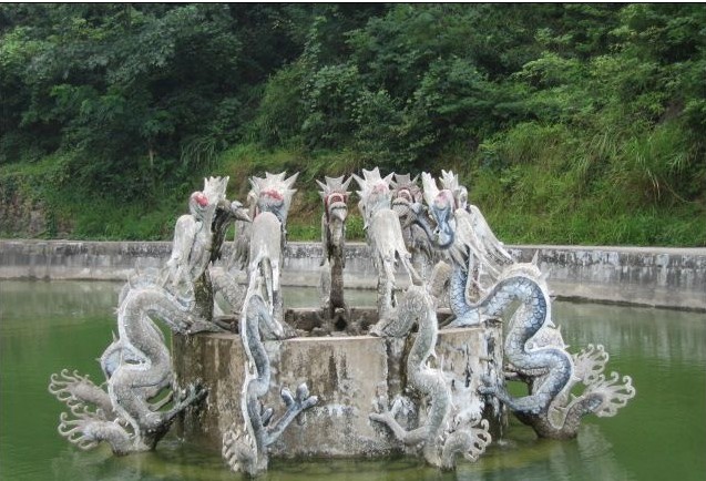 寺廟建筑是九龍山美景的重要組成部分。凡名山勝跡,都伴以殿宇亭榭古樸建筑作景。九龍山很早就有廟宇建在龍鼻山頭上,為鄉民信士進行祭祀游覽的活動場所。九龍山古有“九仙廟山”之稱。所謂九仙者,意為多種神仙。我國道家立上仙、高仙、大仙、玄仙、天仙、真仙、神仙、靈仙、至仙為九仙,據創修九龍山子孫堂碑記載,舊有佛殿、真武殿、關帝殿、靈宮殿,日久毀壞。