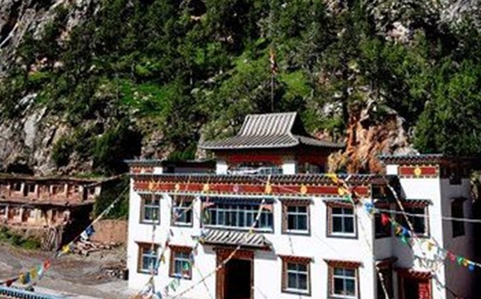 當巴查道代開始在附近尋找建寺之地,初抵布巢格(Butsakger)。其親見本尊觀世音菩薩,而且有非人獻上自然顯現(xiàn)的白色的觀音石像。版權所有山東聊城聊之旅國際旅行社有限公司,轉載必究! 隨后抵至熱格加圖(Rage Kyatok)﹑拉烏布(Rawuphu)等地觀察,但均無建寺的佳兆;于是巴查道代再度返回修行的山洞,請求護法。嗣后有一飛鳥至,叼走供護法的多瑪。巴查道代尾隨飛鳥,沿山洞右側經(jīng)一河流處,到達山洞對面山谷。一狀似觀音菩薩憩臥時的心窩位置,其處有一巨大石頭(其石大如房室般)。飛鳥將多瑪停放在石頭上,剎時有許多靈異神奇的征兆顯現(xiàn),同時阿塞佛母(注:護法之一)現(xiàn)身迎接,表示歡躍之意。自此阿塞佛母成為當卡寺的護法迄至于今。在那巨石下方附近,有一片白色泥沼地(注:當卡即藏文白色泥沼之意。此地甚為吉祥,蓮花生大士曾親自加持此地),巴查道代于是在此地建寺。建寺時,因缺乏水源,巴查道代以其拐杖插入土中,地上乃自然涌出水源。(注:此水源現(xiàn)今仍為寺內(nèi)重要之甘露法泉)。