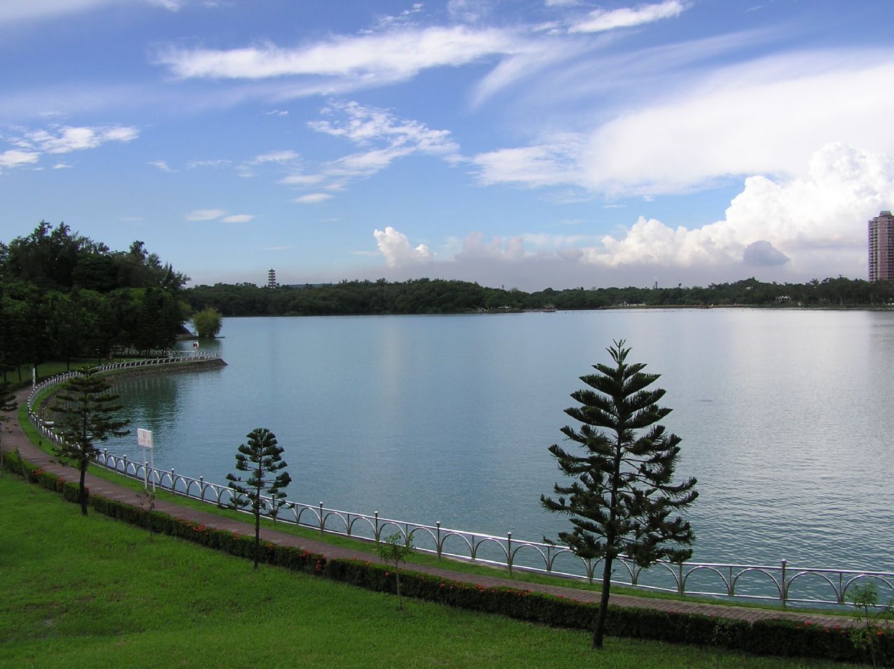 在澄清湖想要觀看湖區全景就必要登上中興塔,該塔是澄清湖中最高的建筑,寶塔內有回旋梯直上塔頂,遠觀后方綠草如茵的版權所有聊城聊之旅旅行社有限公司,轉載必究!高爾夫球場令人心曠神怡。澄清湖無論是曲橋、湖泊、亭樓;或是盛名的三亭(有如、清如、淡如亭)、得月樓、正氣亭,各式古樸典雅的建筑亭樓都是遐邇聞名。