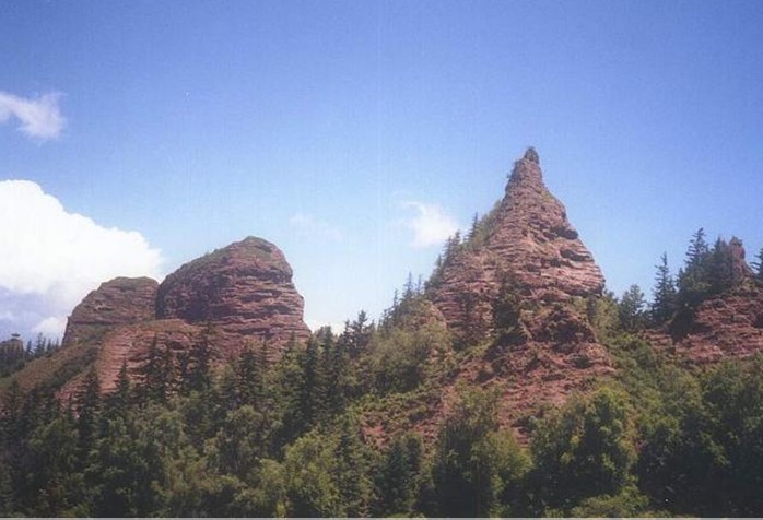 一、奇特的“丹霞”地貌,景色獨特,奇峰、高山、洞穴、峭壁為其主要特征。山體開頭如柱如塔,似堡似壁,平地拔起