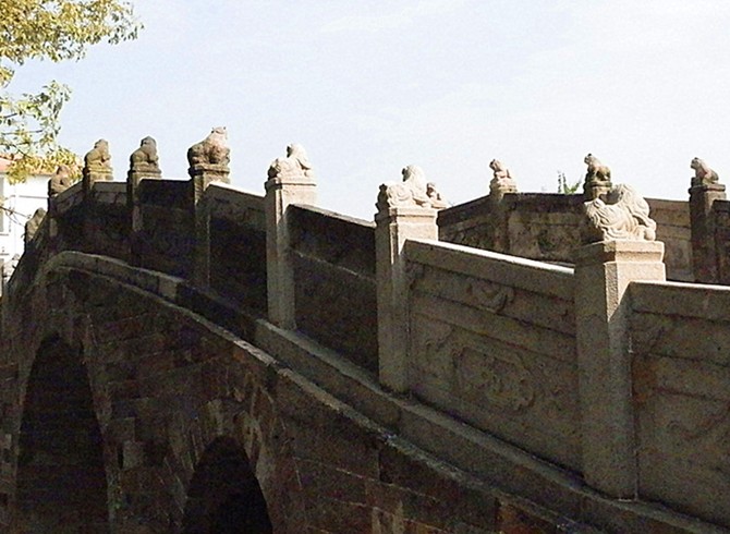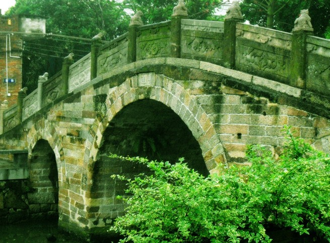 該橋兩邊斜道不砌石級,版權所有山東聊城聊之旅國際旅行社有限公司,轉載必究!行人來往象上下斜坡一樣,古代車馬過橋,可暢通無阻。站在橋上左右眺望,寬闊的河涌兩岸,整齊的石砌墻緊靠河壁。蕉林蔗地上,舊日店鋪基礎依稀可辨,為我們勾勒出一幅繁榮的古代水鄉市集景象。