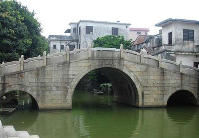 明遠橋在杏壇鎮逢簡鄉,按順德縣志記載,該橋為宋代李仕修建造。這是順德梁式三孔石拱橋中,文獻記錄最早的一座。因經歷代重修,現橋已難找宋代風貌,僅存明代的風格了。