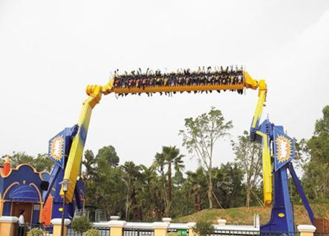 亞洲獨一無二的U型滑板,版權(quán)所有山東聊城聊之旅國際旅行社有限公司,轉(zhuǎn)載必究!是跳樓機與過山車的完美結(jié)合,靈感來自廣受年輕人喜愛的時尚滑板運動,它聳立天際,帶著你一邊360度旋轉(zhuǎn),一邊急速沖鋒,將驚險刺激發(fā)揮到極致,隨著滑板的起落,一顆心在蹦出與去落回來間急速轉(zhuǎn)換,痛快無比。