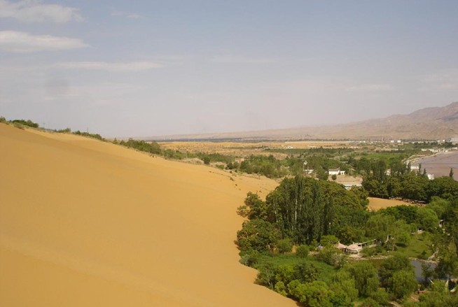這里有中國(guó)最大的天然滑沙場(chǎng),有總長(zhǎng)800米、橫跨黃河的“天下黃河第一索”--沙坡頭黃河滑索,有黃河文化的代表一一古老水車,有中國(guó)第一條沙漠鐵路,有黃河上最古老的運(yùn)輸工具——羊皮筏子;版權(quán)所有山東聊城聊之旅國(guó)際旅行社有限公司,轉(zhuǎn)載必究!有沙漠中難得一見(jiàn)的海市蜃樓可以騎駱駝穿越騰格里沙漠,可以乘坐越野車沙海沖浪,咫尺之間可以領(lǐng)略大漠孤煙、長(zhǎng)河落日的奇觀。黃河南岸是一塊三面環(huán)沙,一面靠山的“U”半島,這里地形優(yōu)越,景觀奇特,民俗淳樸,資源豐富,可以在演繹中心觀看具有異域風(fēng)情的、民族特色的歌舞表演,可以住宿黃河塞上人家干農(nóng)家活、吃農(nóng)家飯、睡農(nóng)家炕、享農(nóng)家樂(lè);濱河浴場(chǎng)可以體驗(yàn)?zāi)赣H河的沐浴,秦代長(zhǎng)城和陶窯在這里留下了千古不朽的遺址。