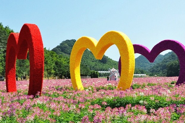 百萬葵園內的葵花經過科學控制,在四月中下旬一同開花,形成百萬葵花海,場面非常壯觀。而且花期安排錯落有序,每天保持有20萬株葵花盛放,令游客無論何時到來,都會感受到葵海的壯觀。這種“葵花海洋”過去只能在新疆、甘肅等地看到,但由于有基因工程的導入,所以可培育出適合亞熱帶種植生長的向日葵,還有一些可常年開花、色彩特殊多樣的品種。