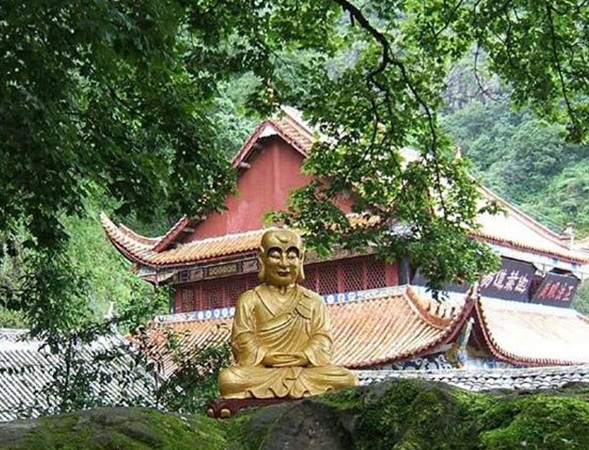 據佛教傳說,三國時蜀將關云長死后曾在玉泉山顯圣,并受戒于天臺智者和尚,問禪于神秀法師,后來佛教奉祀為護法伽藍神。慧燈庵四周被古木茂林所合圍,一年四季每天早晚都有林鳥的鳴唱,正應一句古詩所云“鳥鳴山更幽”。 版權所有山東聊城聊之旅國際旅行社有限公司,轉載必究!慧燈庵后有一棵被稱為“九心十八瓣”的古茶花,樹齡已有240多年。所開的花為十瓣,外觀像獅子頭,花期為每年春節前后。在慧燈庵前,還可仰望到屹立于天柱峰頂直插云霄的金頂寺楞嚴塔雄姿。
