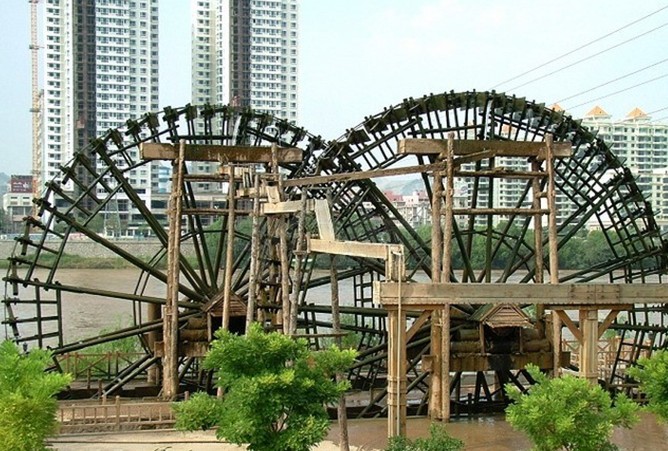 水車發展第三階段。到了元明時代,輪軸的發展更進步。一架水車不僅有一組齒輪,有多至三組,而有"水轉翻車"、"牛轉翻車"或"驢轉翻車",可以依風土地勢交互為用。這項發展,使翻車的利用更有效益。翻車打東漢三國時代發明以來,一直停滯在人力的運轉。至此,利用水力和獸力以為驅動,版權所有山東聊城聊之旅國際旅行社有限公司,轉載必究!使人力終于從翻車腳踏板上解放。同時,也因轉軸、豎輪、臥輪等的發展,使原先只用水力驅動的筒車,即使在水量較不豐沛的地方,也能利用獸力,而有所貢獻。另外,則有"高轉筒車"的出現。地勢較陡峻而無法別開水塘的地方,也能低水高送,有所開發。這是中國水車發展的第三階段。元明之后,中國水車的發展便再沒有多少特出的成就了。