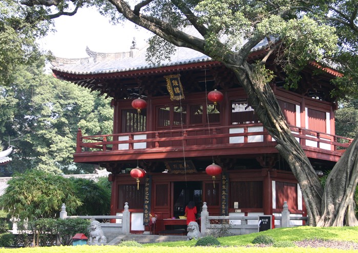 東晉至唐,印度許多高僧曾到光孝寺講律傳法,對中國佛教和中外思想、文化交流頗有影響。唐儀鳳元年(676),懷揣禪宗衣缽的高僧慧能到光孝寺聽印宗法師講經(jīng)。恰逢風吹播動,有的僧人說是風動,有的僧人說是播動,慧能說,既不是風動,也不是蟠動,而是自己心動,語驚四座。接著,慧能公開自己的身份,當時即在寺中戒臺前菩提樹下受戒,開辟佛教南宗,稱“禪宗六祖”。 版權(quán)所有山東聊城聊之旅國際旅行社有限公司,轉(zhuǎn)載必究!現(xiàn)在寺內(nèi)的建筑大多與紀念慧能有關(guān)。如六祖殿內(nèi)2.5米高的慧能坐像,殿東碑廊內(nèi)的六祖像等石刻,大殿后面埋藏慧能頭發(fā)的座發(fā)塔,兩層建筑睡佛閣下層的風播等,都是我們研究禪宗六祖和南宗的重要文物。