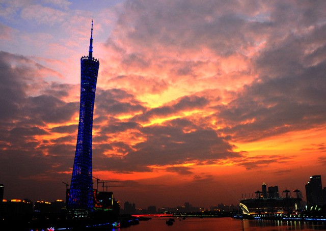 廣州塔(Canton Tower),建于廣州市海珠區雙塔路,距離珠江南岸125米,與海心沙島及珠江新城隔江相望。是一座以觀光旅游為主,具有廣播電視發射、文化娛樂和城市窗口功能的大型城市基礎設施,為2010年在廣州召開的第十六屆亞洲運動會提供轉播服務。該塔由廣州建筑和上海建工集團負責施工,已于2009年9月竣工。廣州塔塔身主體450米(塔頂觀光平臺最高處454米),天線桅桿150米,總高度600米,取代加拿大的CN電視塔成為當時世界第二高電視塔,次于美國北達科塔州KVLY電視塔(高度628.8米,1963年7月14日動工,1963年8月13日竣工),世界第一高自立式電視塔,現僅次于日本東京天空樹塔的自立式電視塔(高度634米,2008年7月14日動工,2012年2月29日竣工),為世界第二高自立式電視塔也成為廣州的新地標。廣州塔已于2010年9月29日正式對外開放,10月1日起正式公開售票接待游客。