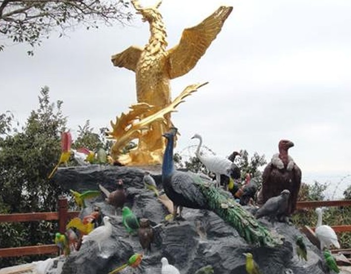經(jīng)佛法大師開光的惟妙惟肖金飾巨幅雕塑“百鳥朝鳳”高約3米,百千珍禽涌拜鳳凰,是三亞市地標(biāo)性珍品。百鳥朝鳳送吉祥,取瑞鳥之靈氣,版權(quán)所有山東聊城聊之旅國際旅行社有限公司,轉(zhuǎn)載必究!保國泰民安,送萬家福樂。游人在此可以求得家人平安、幸福、健康長壽。