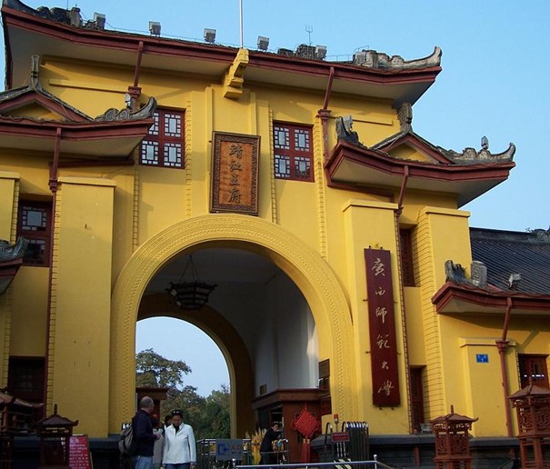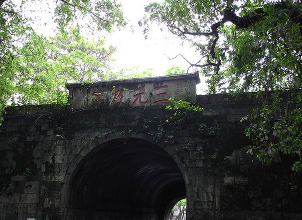三元及第坊在靖江王城南面正陽(端禮)門上。清代學者阮元任兩廣總督時為連中“三元”的陳繼昌所立。三元, 是省級的“鄉試”、全國的“會試”和皇帝親自主持的“殿試”均名列第一, 分別獲得“解元”、“會元”、“狀元”稱號的縮略。自唐代以科舉取士1000多年來, 連中三元的僅13人, 清代兩百多年中僅有2人。陳繼昌是臨桂人, 把用巨石鐫刻的牌坊置于王城正門之上, 是封建社會給科舉成名者的至高榮譽。