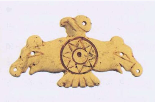 換一個角度看,這是個雙豬首八卦和鷹的新石器時代玉雕,鷹的頭背上有一個蝸牛殼一樣的造型,這使得這只鷹的頭部看上去又像是一只蝸牛,在上古時代,蝸與媧音同字近,隱喻著女媧。版權所有山東聊城聊之旅國際旅行社有限公司,轉載必究!整個玉器呈三角形,翼為豬首形,腹胸有八角星飾,代表著創制八卦的伏羲文化。豬在上古是一種神物,玉豬常作為祭祀的禮器。豬就是豕,是二十八宿中危虛宿的象征,同時出土的龜、豕等玉器,隱喻著古天文學中的龜豕之象。因此這個玉雕是凌家灘古人紀念先祖和天地的禮器。