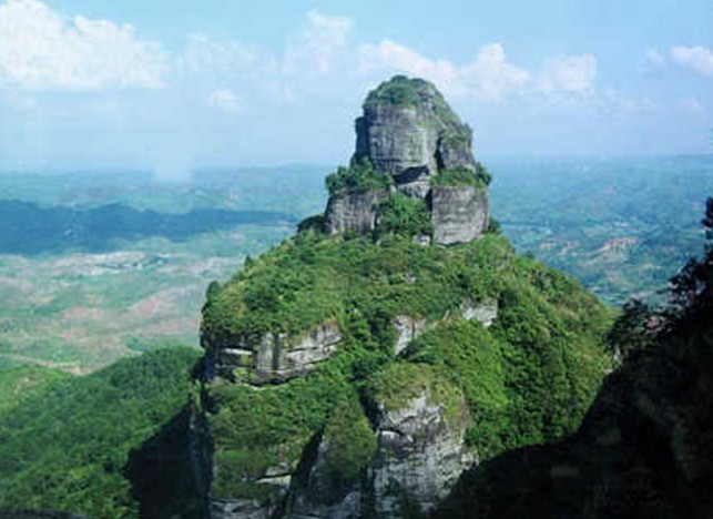 每值霧時,則見云煙在下,峰露石尖,隱見天表。若置身此地,但見云在下,峰在上,腳下云煙往返,忽上忽下,云纏霧繞,急聚急散,氣象萬千,恍若登臨仙山瓊閣,真可謂是只有天在上,更無山與齊。立于峰巔遠眺,天高地闊,茫無涯際,萬山隱隱,千山攢翠,云低霧靄,嶺似象馳。龍川、五華、紫金、東源、連平、和平、博羅七縣界地,了然在目,東韓兩江猶似青絲羅帶,飄舞在群山之間,田疇村野,恰似世外桃源,多美的人間仙境啊!無怪乎當年蘇東坡漫游至此,詩興大發地吟道:“霍山佳氣繞蔥籠,勢壓循州第一峰;石徑面塵隨雨掃,洞門無鎖會借云封;船頭昔日仙曾渡,甕里當年酒更濃;捷步登臨開眼界,江南秀色映瞳瞳”。