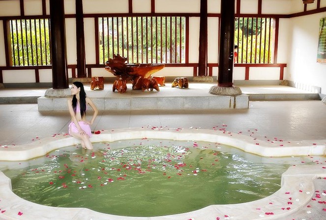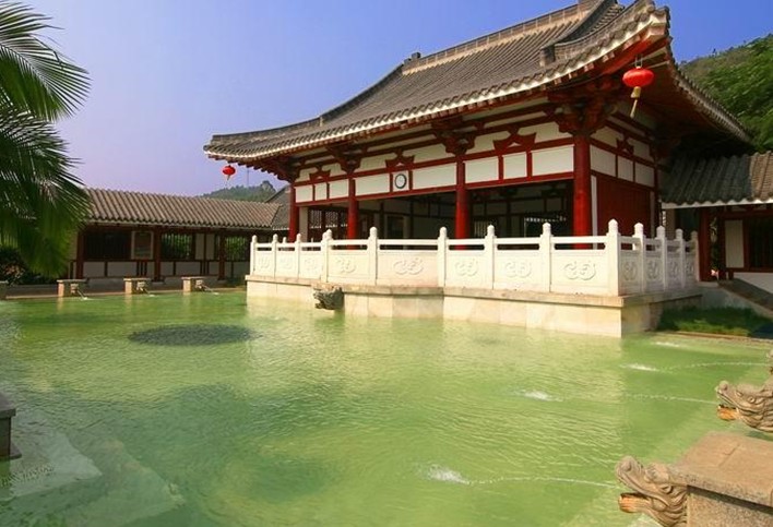 龍?jiān)礈厝燃俪俏挥趽碛?ldquo;溫泉之都”美譽(yù)的河源斷裂地帶的中段,背靠由珍貴的水晶石構(gòu)成的“水晶山”,溫泉水從地下100多米深處透過古老的水晶巖層涌出,水質(zhì)更具靈性,富含40多種礦物質(zhì),硅酸、鋰、鍶、鋅、二氧化碳等珍貴地?zé)岬V泉水。龍?jiān)礈厝燃俪菗碛?3 個(gè)純天然泉眼,勘測(cè)日流量近萬噸,溫泉水資源十分豐富,最高溫度68℃,具有良好的增強(qiáng)免疫力,活化細(xì)胞,養(yǎng)顏瘦身等保健療效。