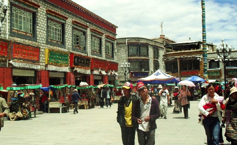 八廓街引又名八角街,位于拉薩市舊城區,是拉薩著名的轉經道和商業中心,較完整地保存了古城的傳統面貌和居住方式。八廓街原街道只是單一圍繞大昭寺的轉經道,藏族人稱為“圣路”。現逐漸擴展為圍繞大昭寺周圍的大片舊式老街區。八廓街是由八廓東街、八廓西街、八廓南街和八廓北街組成多邊形街道環,周長約1000余米,街內岔道較多,有街巷35個。八廓街屬城關區八廓街辦事處,下轄4個居委會,199個居民大院。