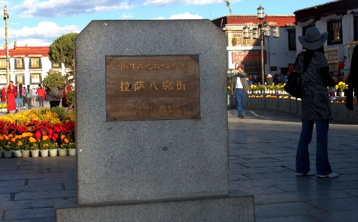 圍繞著八角街的轉經路有許多古跡。在環形路與公路交叉的道口上,曾經豎立著一個高高的名叫“覺牙達金”大柱。藏族姑娘年滿十六歲,就要到覺牙達金大桅桿前舉行一個慶賀成年的儀式。