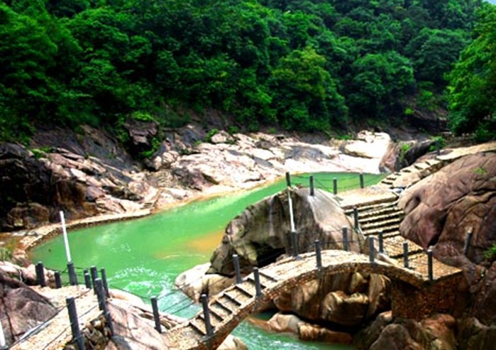 大自然的鬼斧神工賜予了三寨谷獨特的石河奇觀,這里有仙人古井、仙人腳印、不倒石、飛來石、手足石、龜背石……簡直是一個"萬石園";石是山之骨,水是山之魂,三寨谷最具靈韻飛揚之處還要算昆龍瀑布,版權所有山東聊城聊之旅國際旅行社有限公司,轉載必究!瀑布從山間凌空而出,蕭蕭灑灑,飄舞若素練,姿態曼妙,宛如凌波仙子,"仙子"下的仙女潭更是游泳戲水的最佳去處。除了大自然景觀,三寨谷還蘊涵著豐富的人文景觀,這里有牛郎織女的故事、八仙之一的何仙姑修煉成仙的遺址壽龜石,還有明朝嘉靖年(500多年前)的造紙廠遺址等。