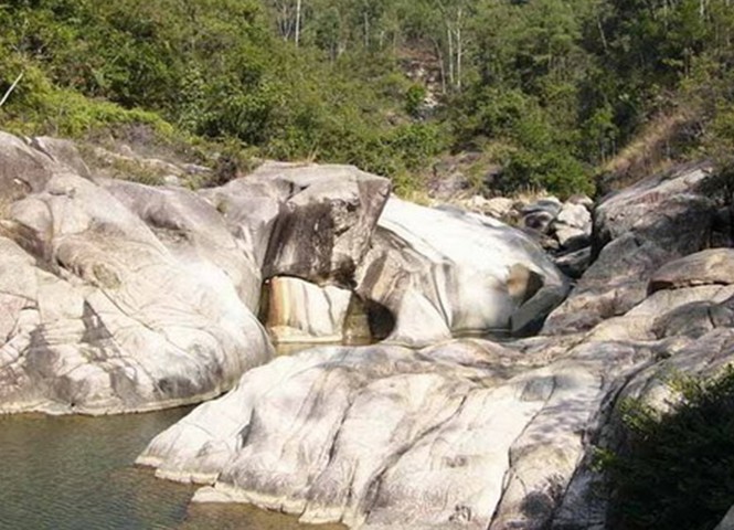 良田河深入8、9公里,那莽莽蒼蒼的原始次生林遮天閉日,深邃的峽谷亂石層層疊疊,又被溪水沖刷得千瘡百孔。這里既有花崗石因垂直節理發育而形成的如劍劈斧砍的裂縫,又有花崗石特有的球狀風化形成的石蛋,也有流水夾帶礫石沖刷巖體形成的甌穴。