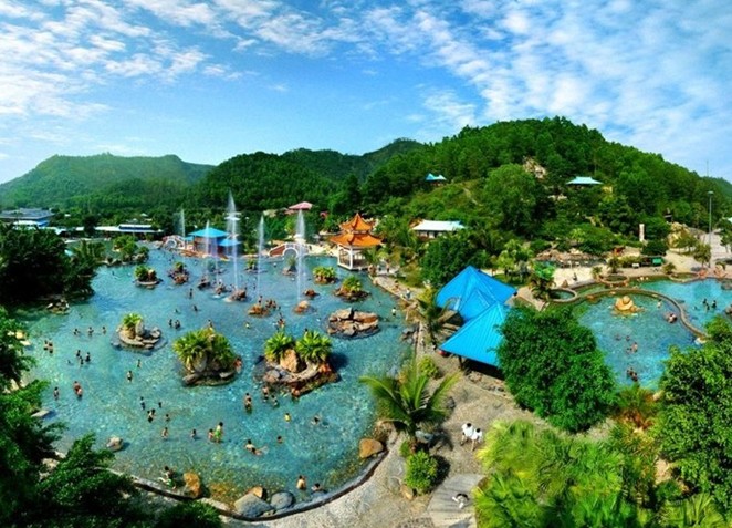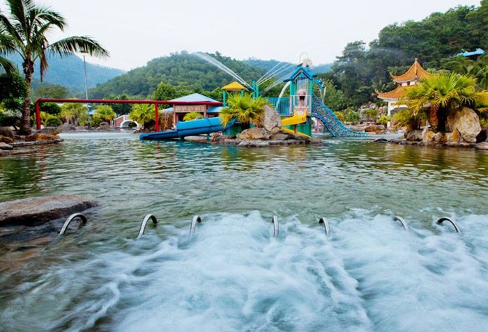 浴區內有多處自噴溫泉,日流量為6000立方米,其溫泉水溫高達73℃,水質晶瑩幼滑,并含有偏硅酸、氟、氫、硫等多種有益于人體健康的元素,屬優質醫療溫泉及罕有的溫滑泉。