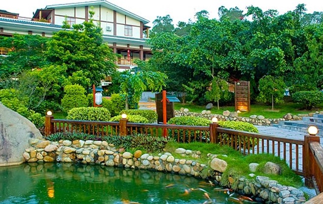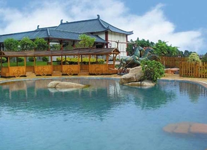 投資2.3億元依山而建的古兜溫泉,集山、泉、湖、海為一體,風(fēng)景優(yōu)美,有著豐富的溫泉資源,在古兜山下新近落成的溫泉谷,格調(diào)高雅,打造出一個(gè)不同凡響的溫泉王國(guó)。溫泉谷中間有一條約150米長(zhǎng)的人工鵝卵石河道,它不僅為景區(qū)增添了春山幽谷的野趣,更和中央水區(qū)的大舞臺(tái)及各大小泡池相連,將谷內(nèi)建筑群落自然分成了三大區(qū)域:北邊是歐式風(fēng)格的“羅馬殿”,東邊則是日本和式風(fēng)格的“東瀛閣”,南邊是“唐宮”。