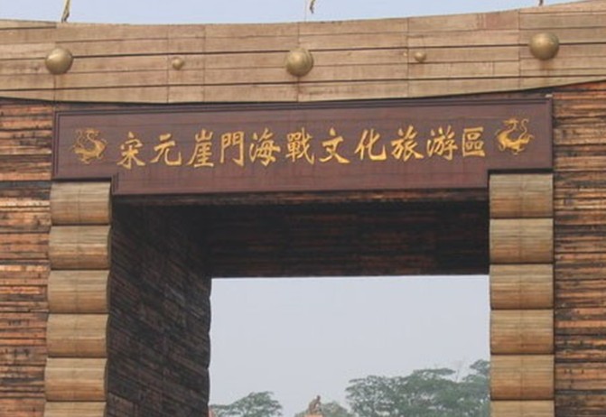 宋元崖門海戰文化旅游區位于廣東省江門市新會區古井鎮官沖村崖門古戰場,距會城鎮約50公里。該旅游區規劃總面積共1100畝,共分四大功能區:即文化主題紀念區、文化休閑體驗區、生態園林保育區和遠景規劃發展區。目前,已投入使用的是首期工程,占地250畝,投入了2000多萬元資金進行改造建設。
