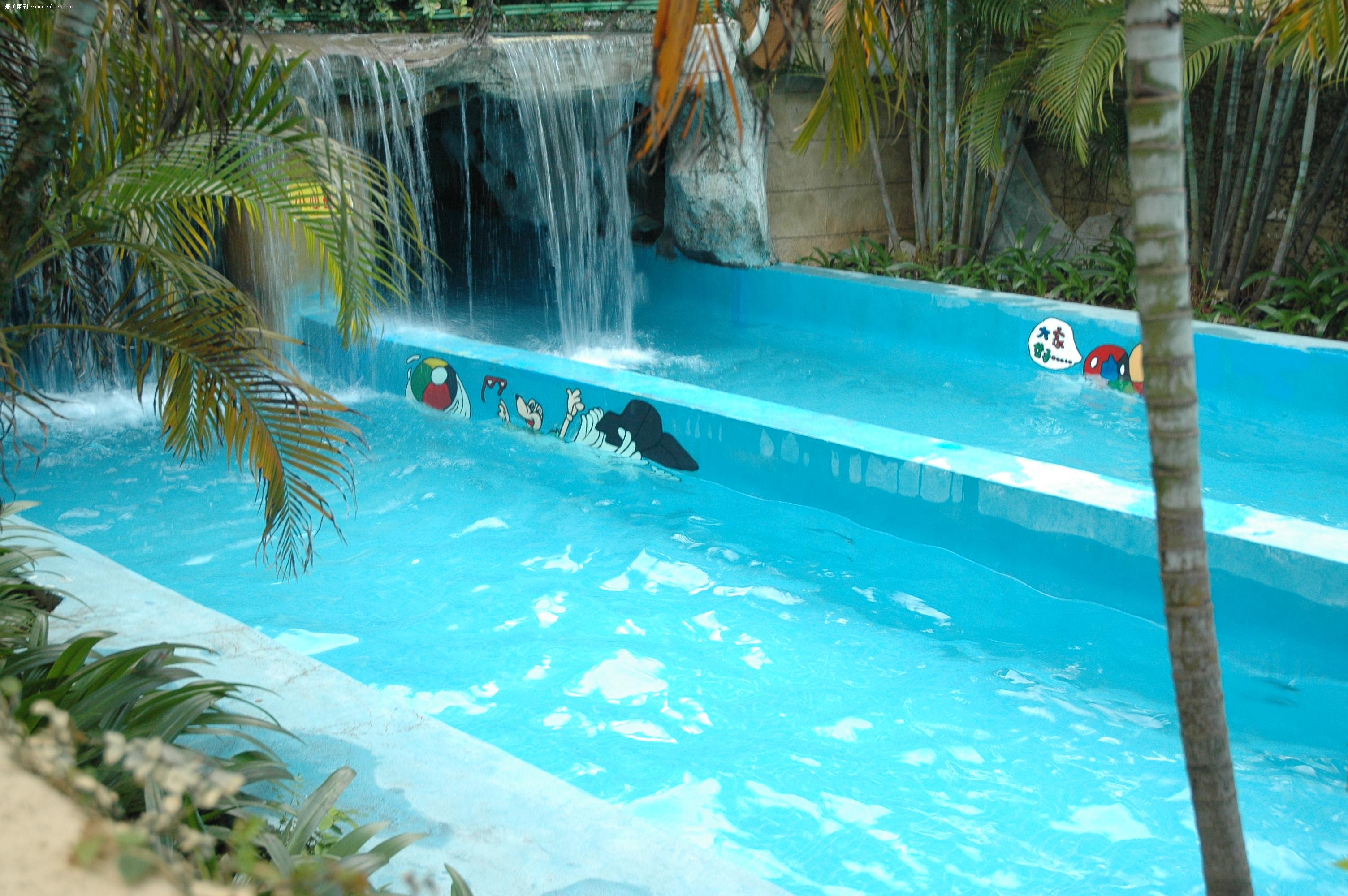 二、濃蔭蔽日、棕櫚搖曳的南國(guó)風(fēng)情使人心曠神怡。 闊別一冬的夢(mèng)幻水城已經(jīng)成為一個(gè)濃蔭蔽日、棕櫚搖曳的綠色的世界,漂流河、兒童池、滑道以及情侶池等被綠蔭所掩蓋,那些爬藤植物使所有的遮陰棚看起來(lái)象一座座涼爽的小屋,使“古老的廊堡”更添滄桑感。在一片綠色的世界下面,潔凈的水汩汩而流,水槍水炮在樹(shù)逢里噴射,這是一個(gè)真正的清涼世界。