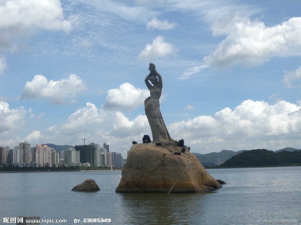 這座石雕,有8.7米高,重量10噸,用花崗巖石分70件組合而成,是中國著名雕塑家潘鶴的杰作。而今,這座雕像已成為珠海市的象征,是珠海一處著名的免費的旅游景點。漁女優美的傳說,伴隨著珠海市在國內的知名度,流傳越來越廣、越遠,是珠海市人民的驕傲。