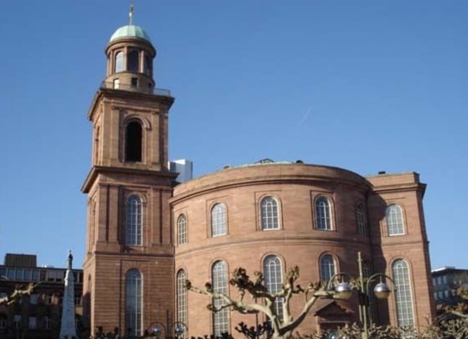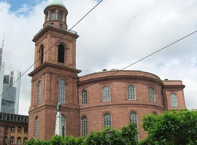 保爾教堂(Paulskirche)又譯圣保羅教堂(St. Paul's Church)坐落于德國法蘭克福,始建于1787年,是一座橢圓形的新教教堂,是德國重要的政治象征符號。是當時為了取代方濟各會教堂(赤腳修士的教堂)(Barfüsserkirche)由該市建筑大師約翰`安德烈亞斯`李卜哈特(Johann Andreas Liebhardt)所設計的。1833年,這座雄偉的古典砂巖教堂終于落成。